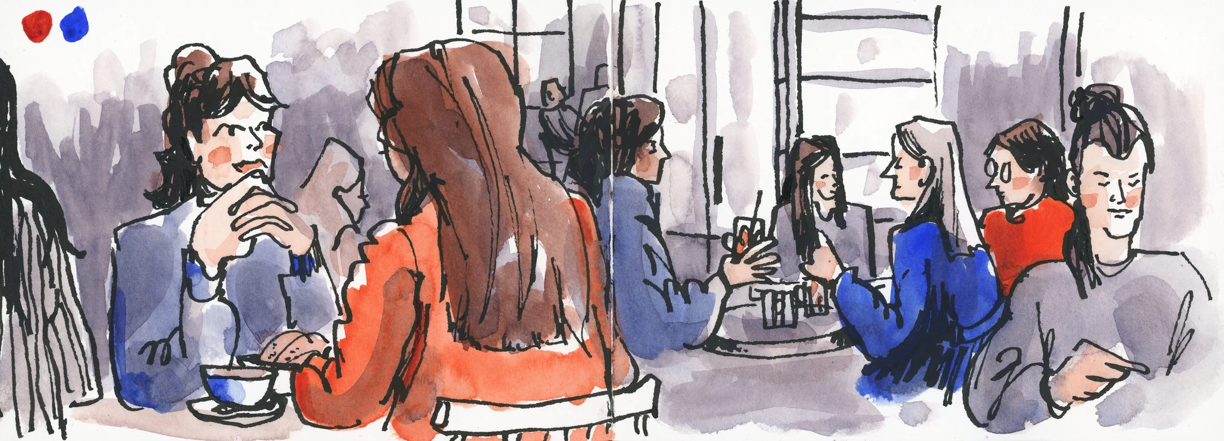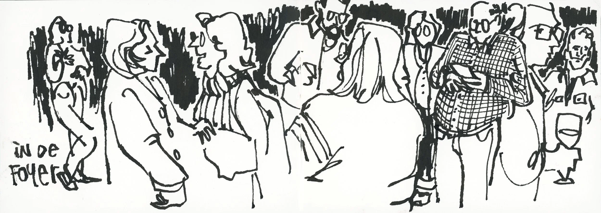 A trip to the theater turned into an impromptu people-watching session. Drinks, good conversation, and a sketchbook filling up as the audience trickled in -- all before the show even started. Waiting time is sketching time. Always have your kit with you.